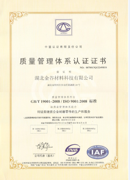 质量管理体系认证证书